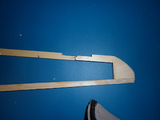 Now I've started cutting off the broken spars and preparing them for a scarf join to the new parts. It's best to make the joint as long as possible. Note where I marked this out and then found I could extend it a bit longer.